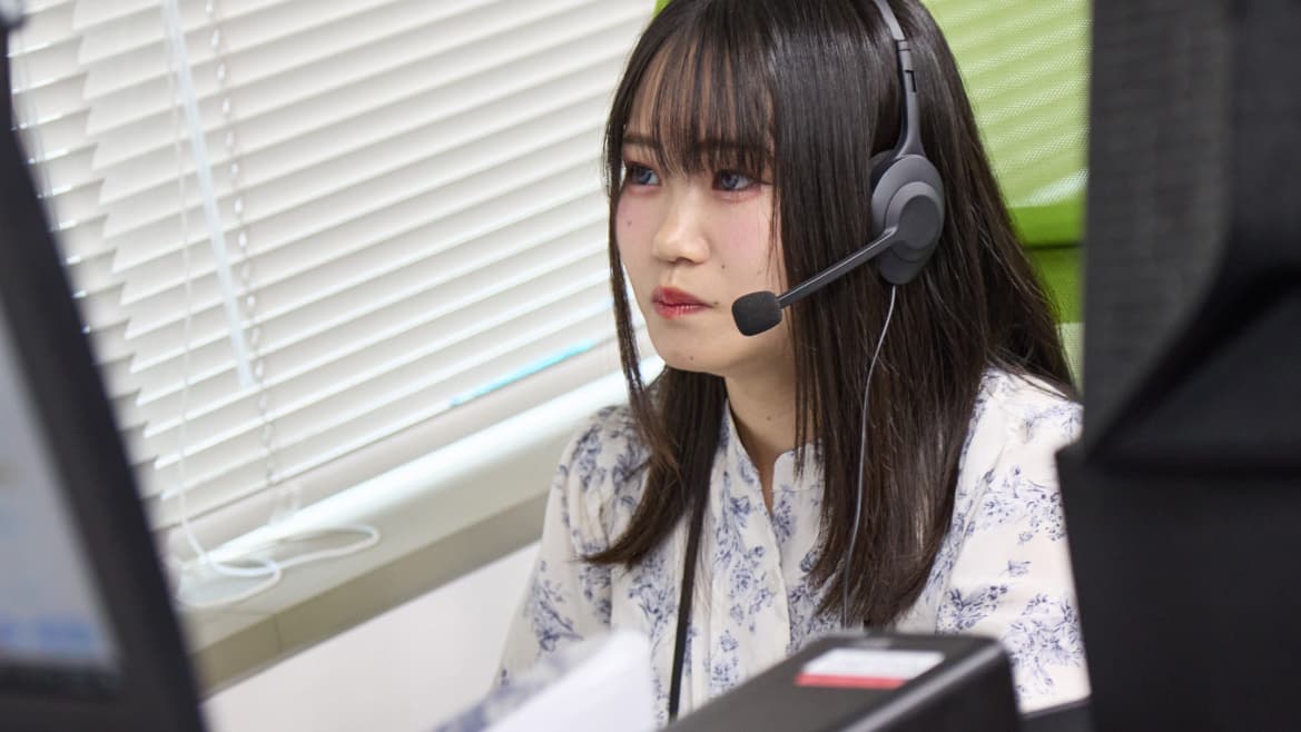 いまは架電中のスタッフを助けることが私の仕事です。困っていそうなスタッフがいたらすぐにモニタリングして、会話の内容を確認しています。そして、対応できることをアドバイスし、お話をまとめられるようにサポートしています。